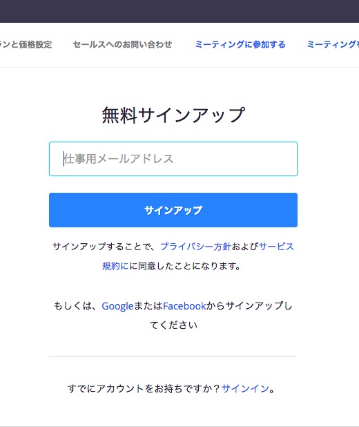 登録するメールアドレスを入力して、「サインアップ」をクリックします。