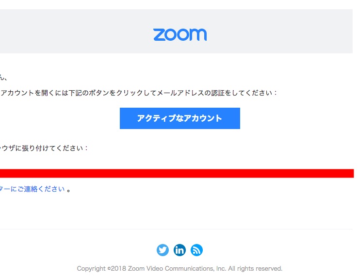 入力したメールアドレスにアカウント作成のメールが届いていますので、メール内にある「アクティブなアカウント」をクリックしします。